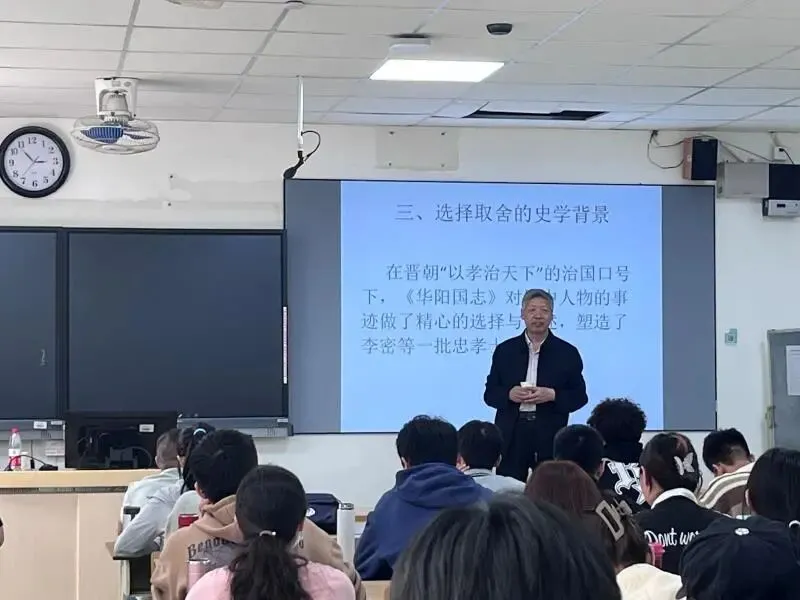 张廷银教授首先指出:此次讲座两个讲解角度分别是后三国的时代背景和地方志的著述特性,进而通过对比《华阳国志》和《晋书》对同一人物的不同记载,得出了地方志对人物褒而不贬的结论。