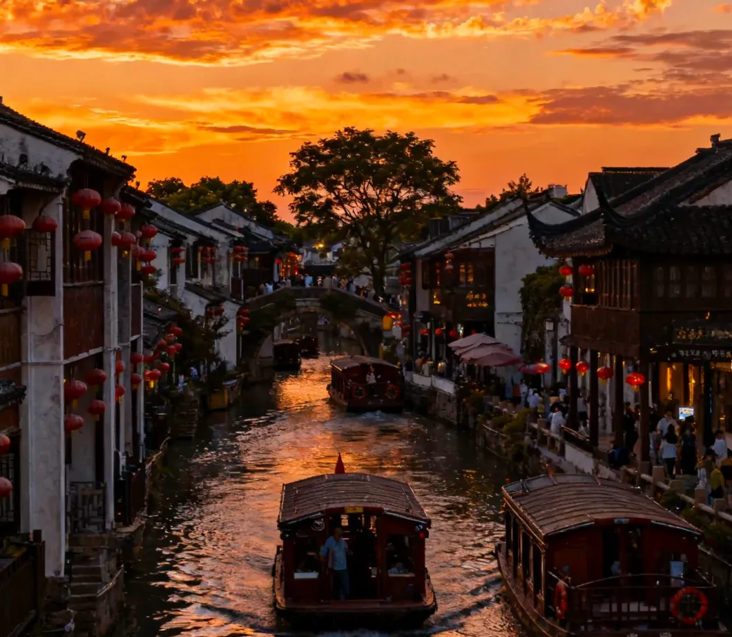 山塘街晚上一走就出片,灯笼一亮,谁都像来了古戏台。