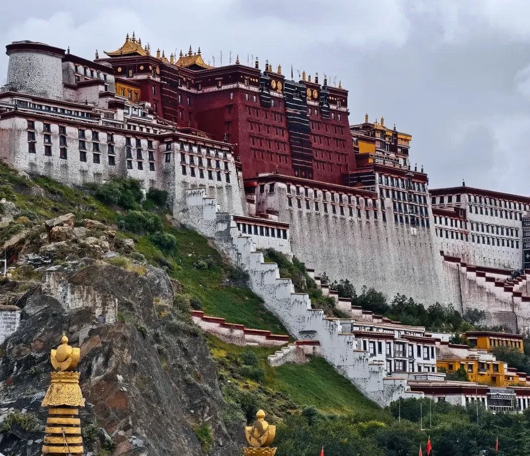 布宫的前世今生不短,松赞干布为迎娶文成公主在红山建宫,五世达赖再扩起来,白宫办公,红宫修法,殿里壁画讲的是吐蕃史和观音缘起。