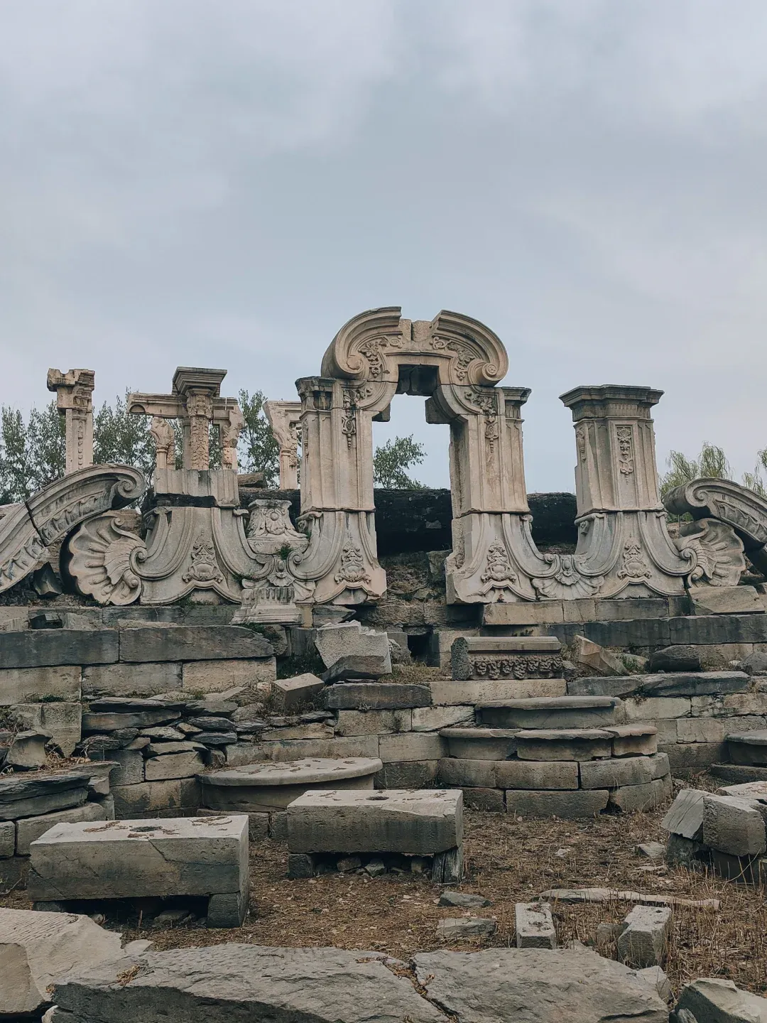 圆明园里讲的是“万园之园”,福海一圈看尽江南北国,还能看到石刻残件,站一会儿,心里会软。