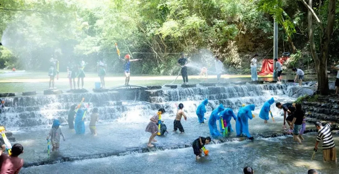 “一瀑一重天,一步一处景”,七彩瀑布在阳光下幻化出梦幻光晕,溪流潺潺,林木葱郁,空气中弥漫着淡淡草木香,宛如世外桃源。