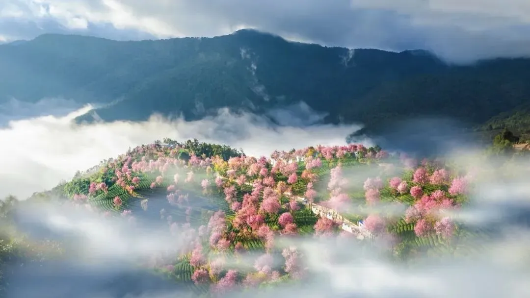 无量山樱花谷:冬季樱花漫山,彝族、白族村寨点缀其间,宛如世外桃源。