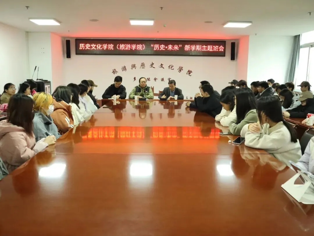 3月14日,校领导李耿年到历史文化学院(旅游学院)参加了“历史·未来”新学期主题班会。班会由历史学类2402班承办,学工部思政科相关老师、学院学生工作负责人、学工办副主任、辅导员、班导师和班级47名同学到场参加。