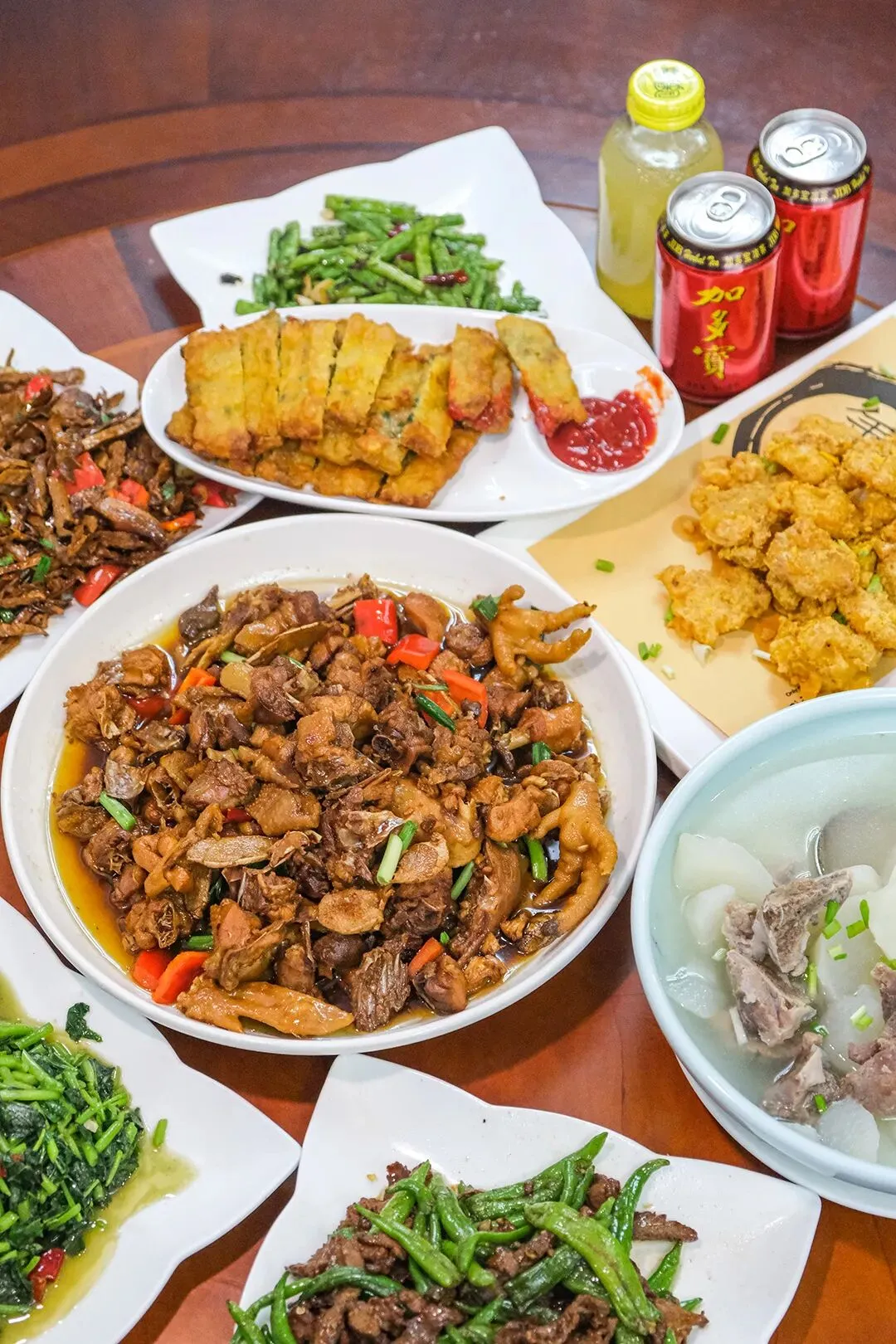 推荐:拔丝地瓜(外脆内软,甜而不腻,yyds!)、萝卜炖仔排汤(高山盘前萝卜,清甜暖胃)、红烧新公鸡(肉质紧实弹牙)、田螺鸭爪煲(地道风味,回味无穷)