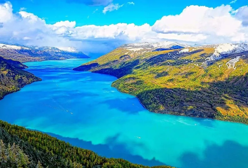 喀纳斯湖位于新疆维吾尔自治区阿勒泰地区布尔津县,是一个高山堰塞湖,以其神秘而美丽的自然景观吸引着无数游客。喀纳斯湖的水因光线和天气变化而呈现出多种颜色,蓝色、绿色、深蓝等相互交错,仿佛在诉说着大自然的秘密。湖泊周围的山脉和森林环绕,形成了完美的自然环境,生物多样性丰富。秋季的喀纳斯湖更是美不胜收,金黄的白桦林与碧蓝的湖水相映成趣,构成了一幅绝美的画卷。