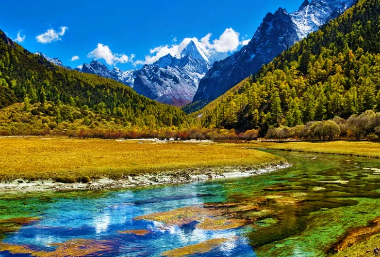 稻城亚丁位于四川省甘孜藏族自治州稻城县,被誉为“香格里拉”的具象。这里拥有壮丽的雪山、辽阔的草甸、五彩斑斓的森林和碧蓝通透的海子。仙乃日、央迈勇、夏诺多吉三座神山圣洁庄严,成为当地的信仰象征。牛奶海和五色海如两颗璀璨宝石镶嵌其中,湖水清澈透明,色彩斑斓。站在亚丁的山巅之上,可以感受到大自然的壮丽与神秘,仿佛置身于一个遗世独立的仙境之中。
