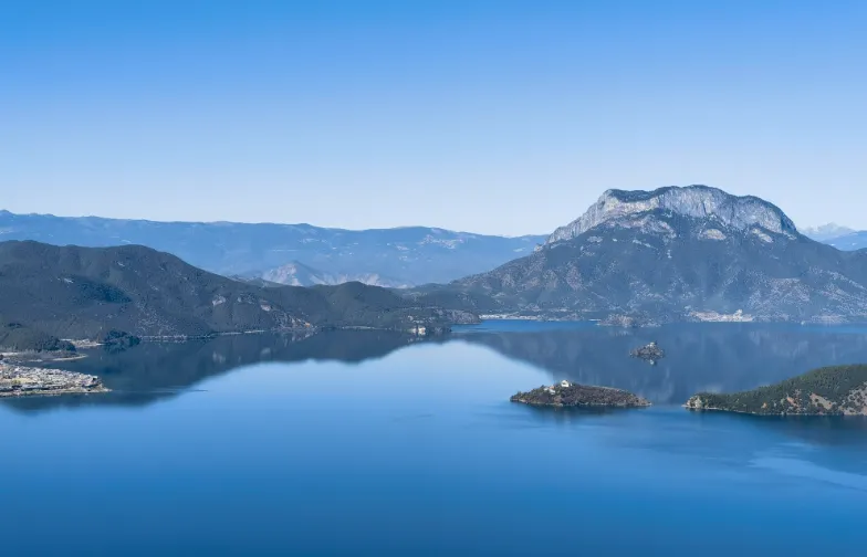 泸沽湖位于四川省盐源县与云南省宁蒗县交界处,被誉为“高原明珠”。湖水清澈蔚蓝,如诗如画,风光旖旎。湖中有五个全岛、三个半岛和一个海堤连岛,形态各异,翠绿如玉。湖周是茂密的原始森林和广袤的田园风光,木摞房舍、炊烟袅袅、牧歌陈陈、渔火点点,好一派景象万千的农家田园景象。泸沽湖还是摩梭人的聚居地,这里保留着独特的母系文化和走婚习俗,为泸沽湖增添了一份神秘与魅力。