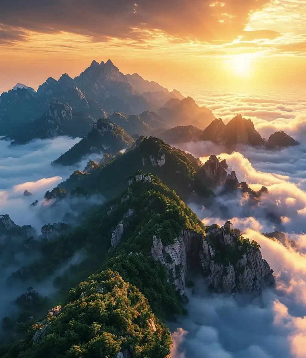 五岳之首,历代帝王封禅祭祀之地,以雄伟壮丽的山势和深厚的文化底蕴闻名。山不再高,有仙则名。不到长城非好汉,不登泰山是遗憾。