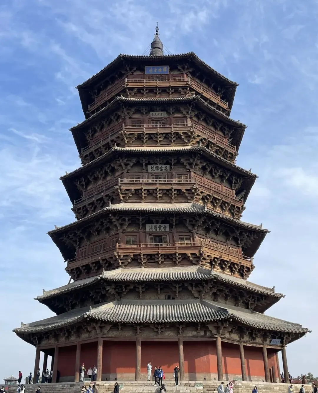 世界三大奇塔之一,与比萨斜塔、埃菲尔铁塔齐名。世界上现存最高、最古老的纯木结构楼阁式佛塔,塔高67.31米,全塔无钉无铆,全靠斗拱榫卯咬合,堪称建筑奇迹。