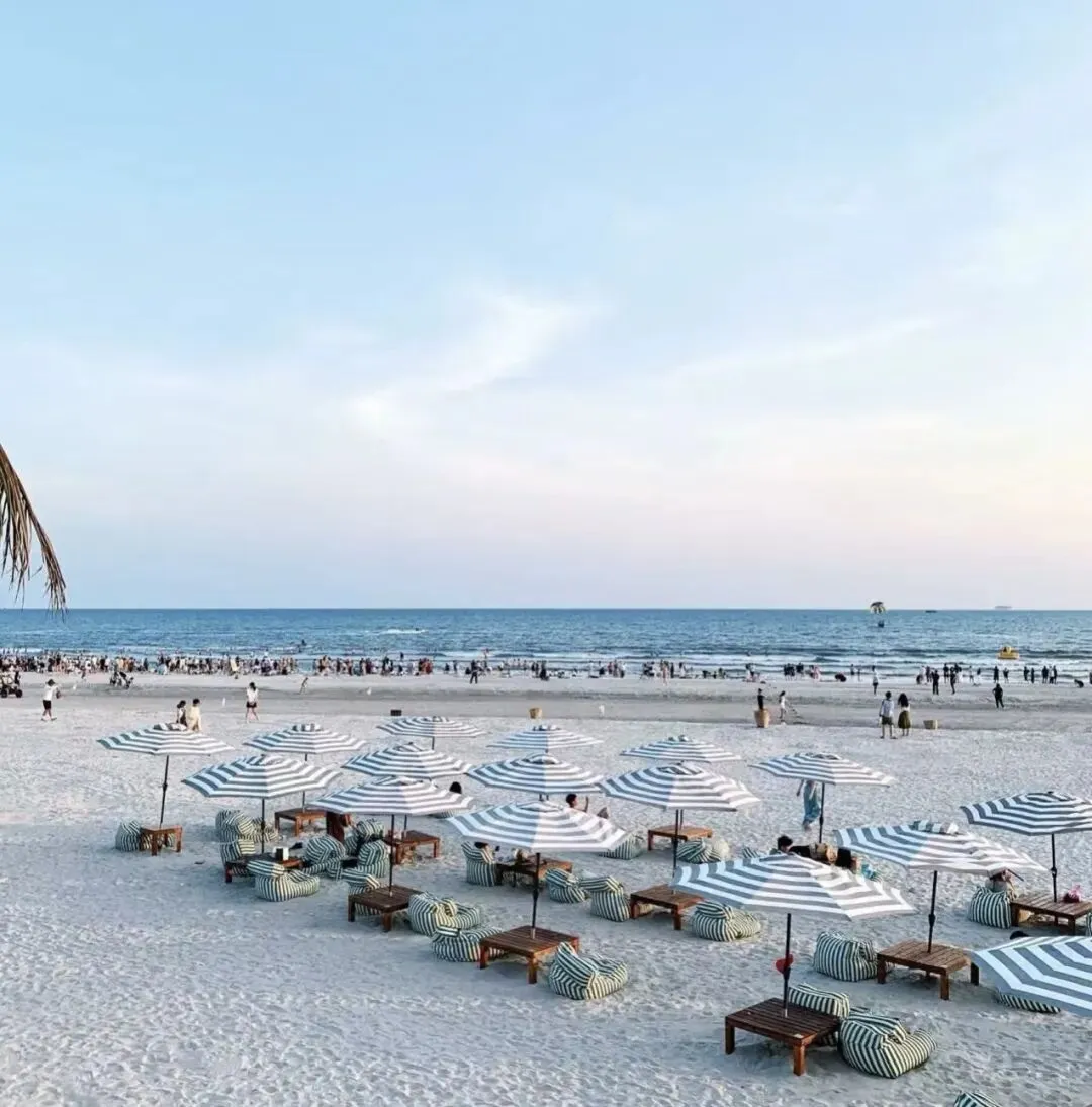 以“滩长平、沙细白、水温净、浪柔软、无鲨鱼”的特点闻名,是优良的天然海滨浴场,海水退潮快,涨潮慢,沙滩宽阔。