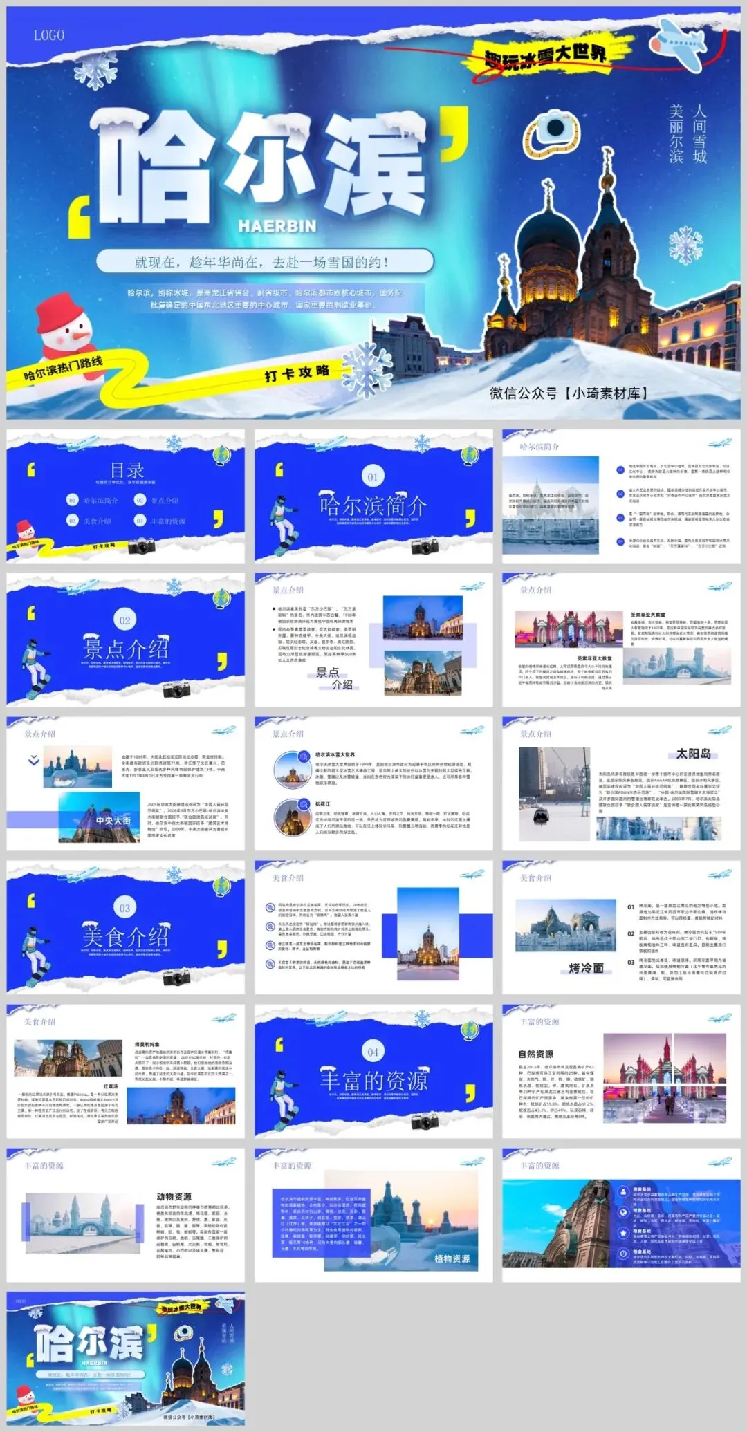 【2180期】哈尔滨城市旅游PPT大放送!走过路过不要错过,冰雕、美食、美景一网打尽!公众号改推送机制啦!点左上角蓝字小琦素材库,设置星标★,好资源不错过!