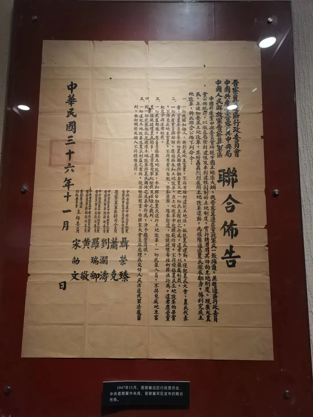 1947年7月17日至9月13日,中国共产党全国土地会议在西柏坡召开。会场设在村东的恶石沟里,主席台搭在沟端的地坪上,上面搭了布棚用来遮阳,代表们坐在自带的凳子上或石头上参加会议。会议通过了《中国土地法大纲》,经中央批准后颁布实施。