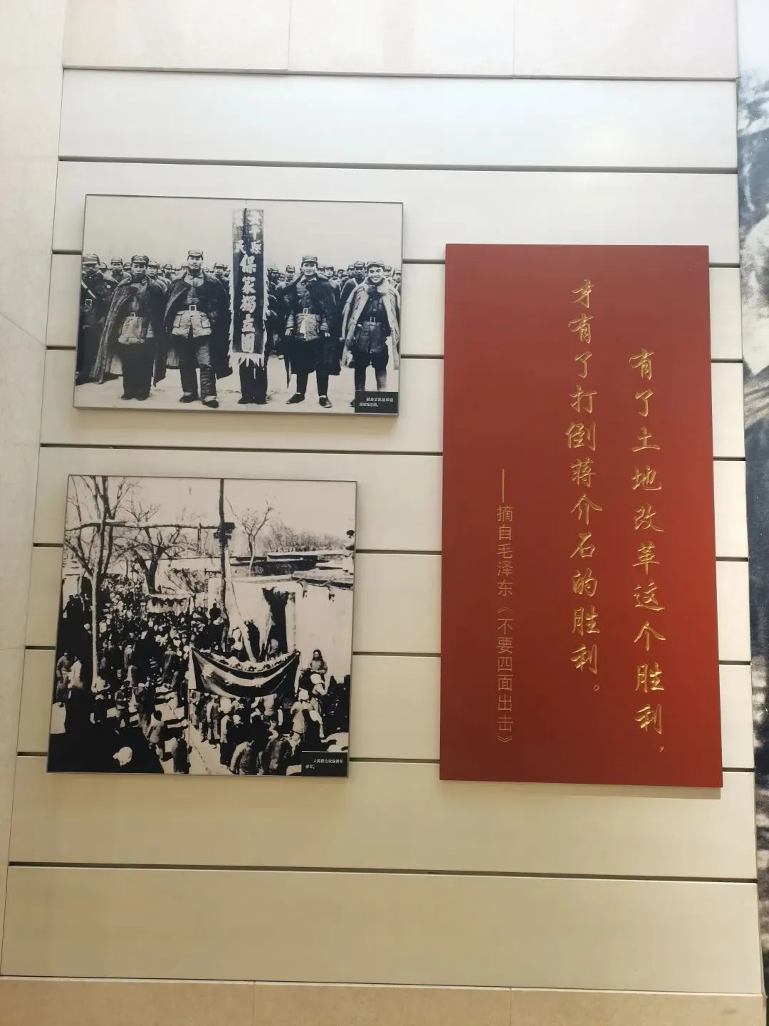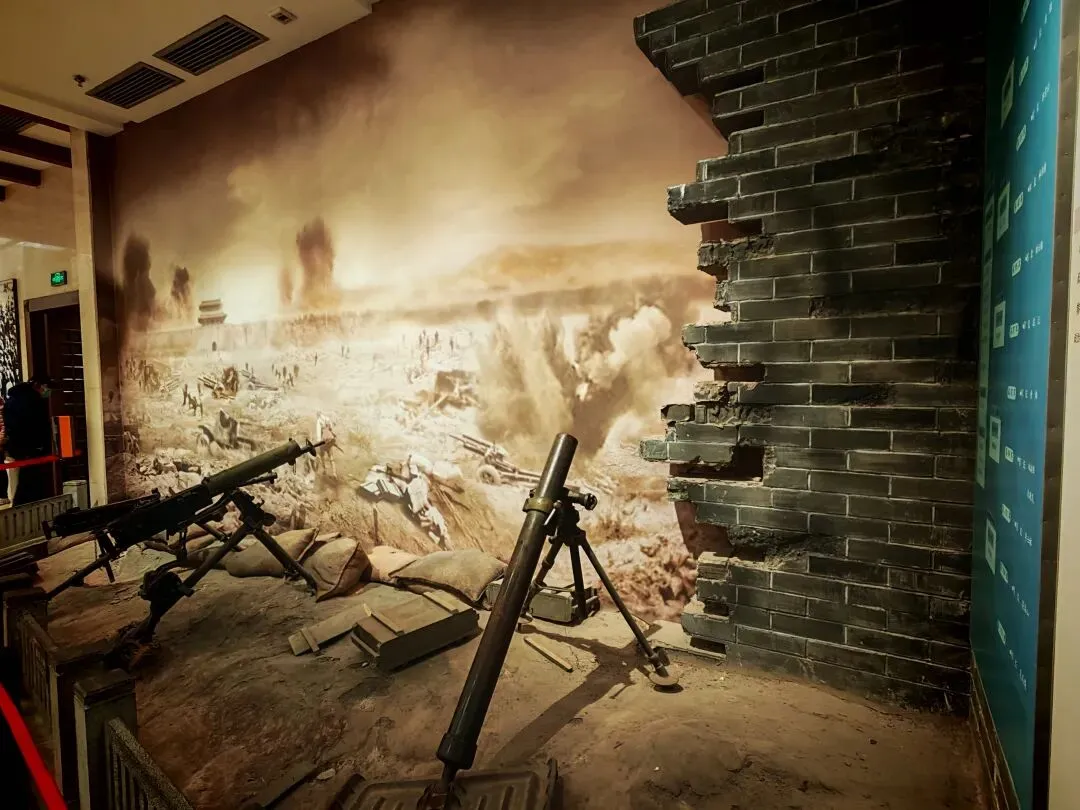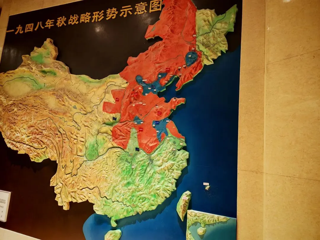 西柏坡纪念馆,顺山势建造,分上中下三层,为阶梯式四合院,四周走廊环绕,内藏革命文物2000余件。以解放战争后期中共中央在西柏坡时期的活动为主线,运用了大量的文物、照片和历史资料,辅之于绘画、雕塑、景观、幻影成像、半景画等高科技手段,突出重大事件,设立了12个展室,每个展室均展出大量展品,系统反映了中共中央们在西柏坡期间的革命实践活动。从西柏坡这个小山村,党中央踏上了“进京赶考”的征程。