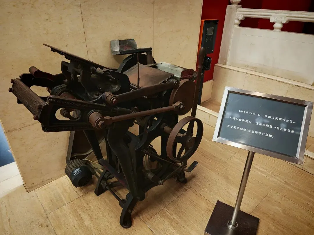 1948年12月1日,中国人民银行货币一人民币首次发行。这是印刷第一批人民币使用过的印码机(北京印钞厂捐赠)