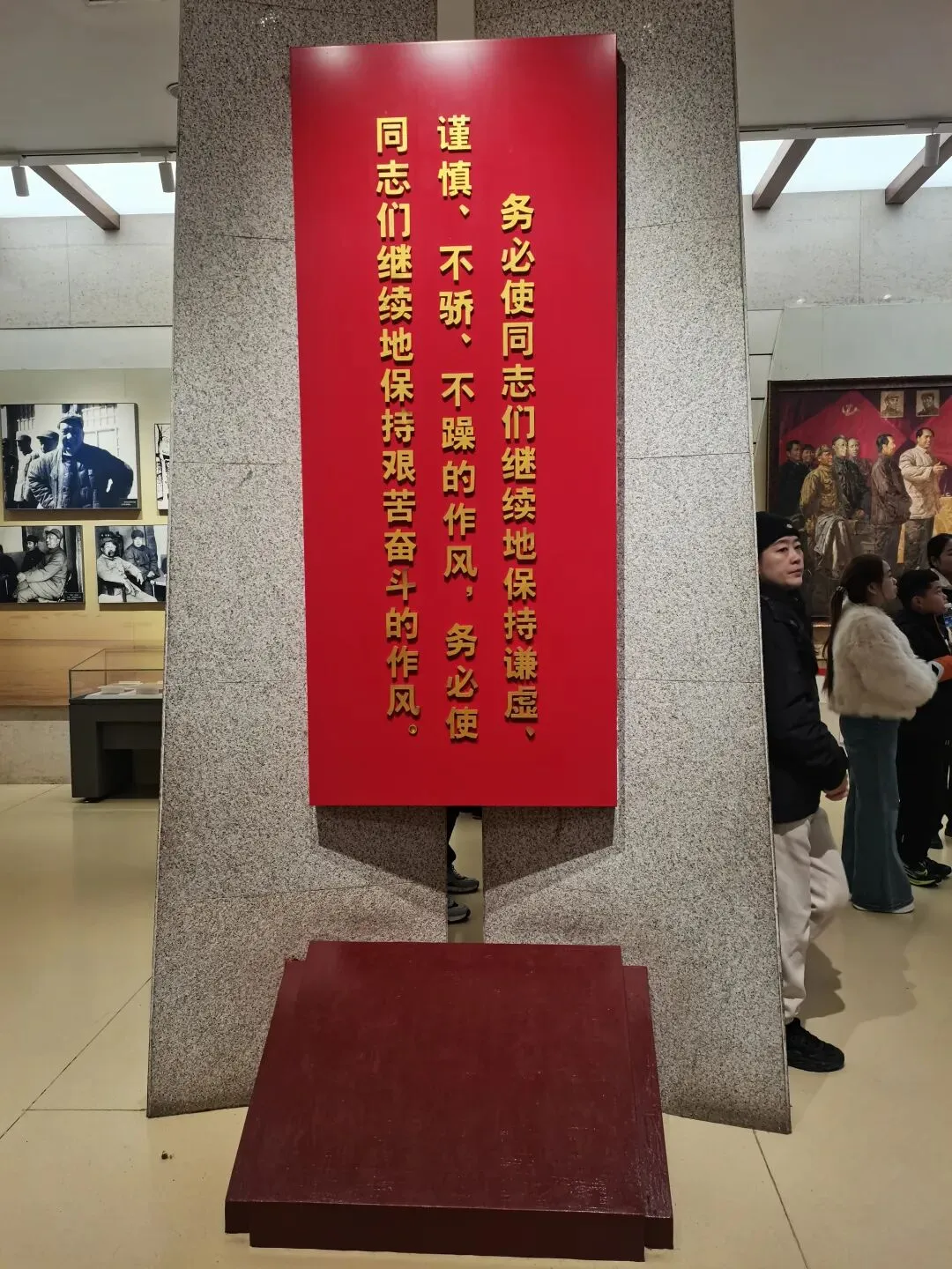 穿过蜿蜒曲折的地道,来到后院,东北部三间窑洞式建筑为朱德办公室和居室旧址,在大院西部前后院之间有中共七届二中全会旧址。坐在大会堂内委员们当时参会就坐的位子上,回想起那波澜壮阔且充满力量的历程,大家更加意识到当今国家富强人民幸福的来之不易。祝愿祖国更加繁荣昌盛,也愿每个人都牢记历史,不忘初心。