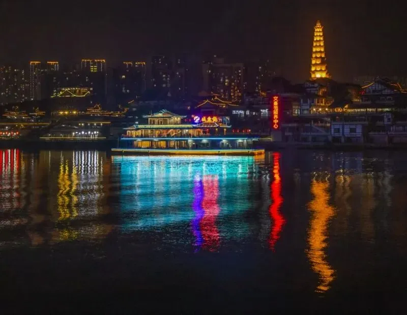 “钓鱼城号”游轮推出宋韵“三江夜宴”,以合川三江文化、巴渝历史为魂,融合宋代风格游船,将“夜游三江”与“宫廷御宴”结合,打造古韵歌舞、乐曲、诗词与美食一体的沉浸式体验。黄昏登船开启惬意时光,尝御宴、赏歌舞。夜幕下,嘉陵江、涪江两岸霓虹璀璨,景点灯彩点缀,三江夜景与宋韵宴饮相衬,成就合川“江上宋味”文旅体验。