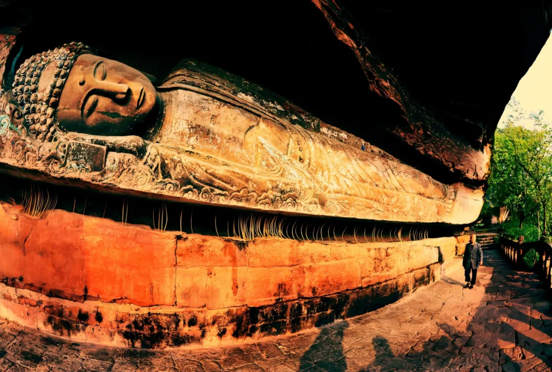 ▲钓鱼城悬空卧佛