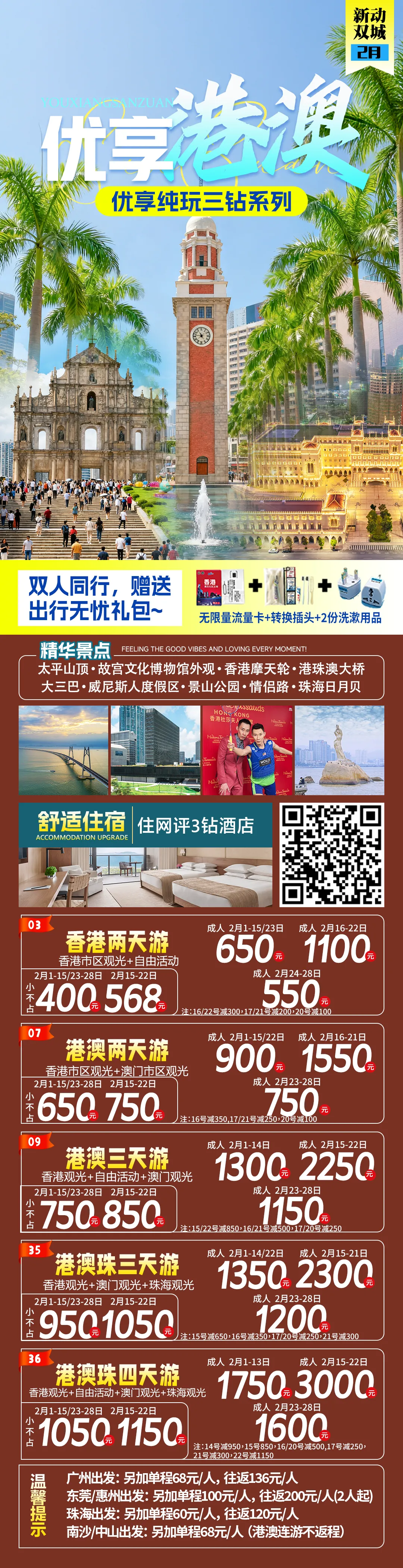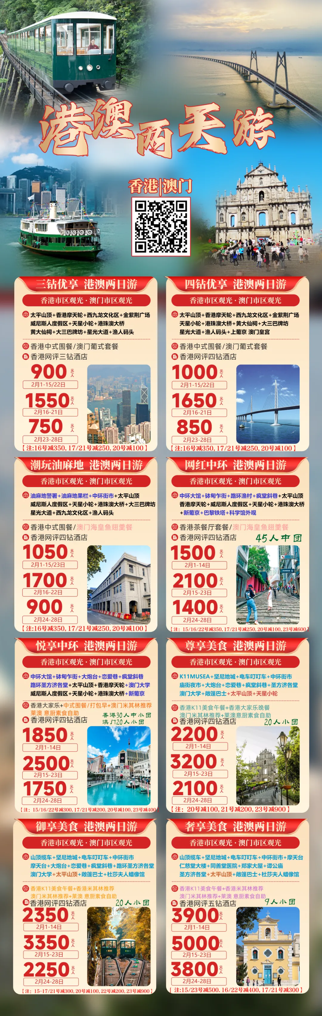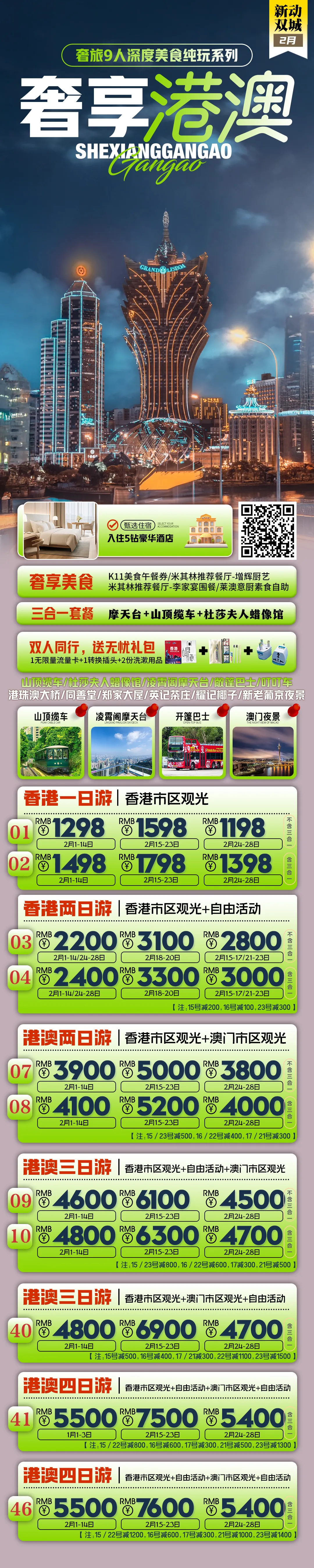 2026年春节寒假恭贺新禧《香港澳门旅游》香港一天-澳门一天-香港两天-港澳两天-港澳3天-港澳4天等计划