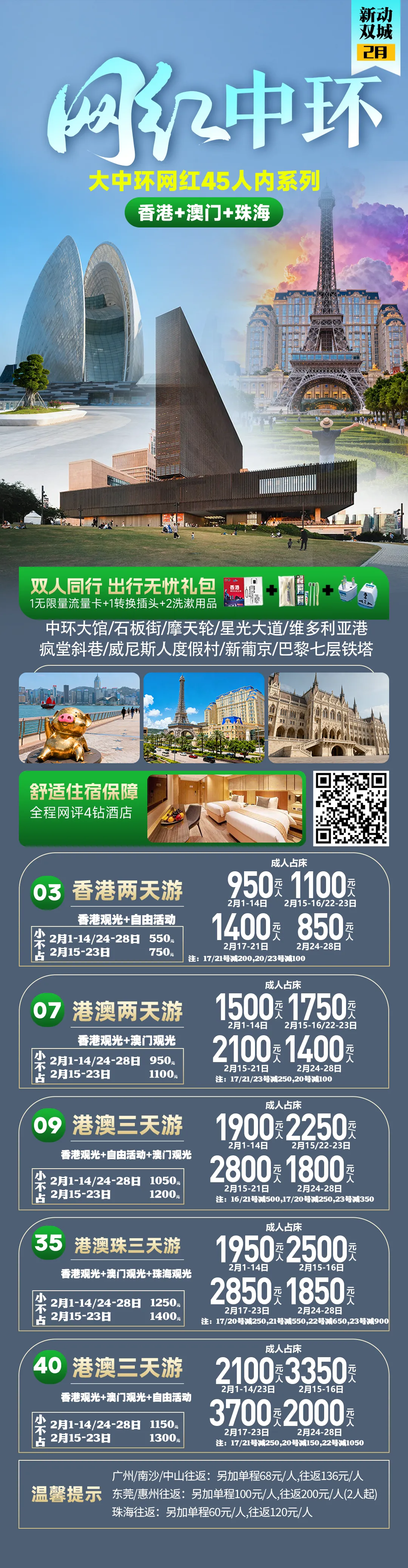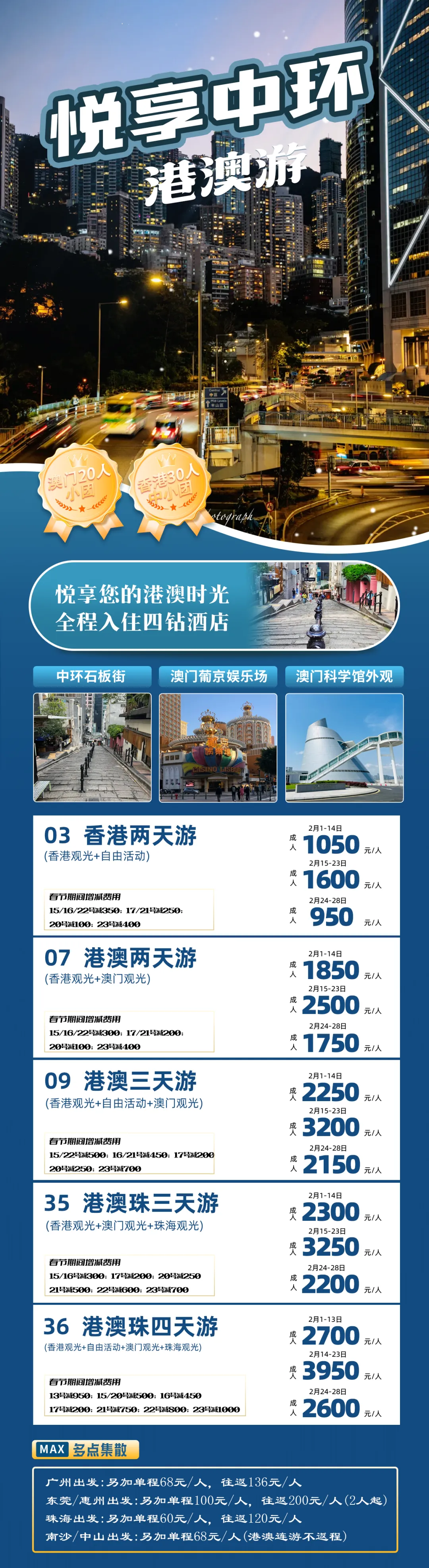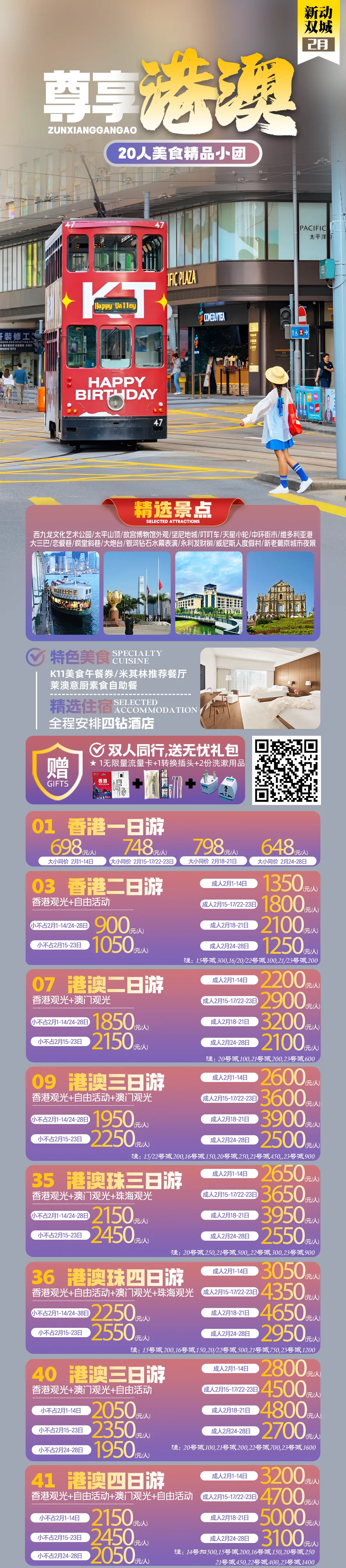 2026年春节寒假恭贺新禧《香港澳门旅游》香港一天-澳门一天-香港两天-港澳两天-港澳3天-港澳4天等计划