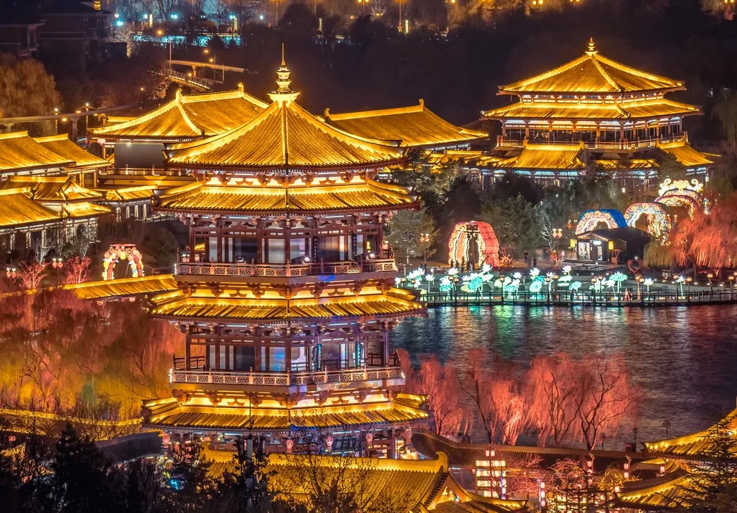 喜欢河水就去曲江。 兴庆宫公园有荷花,晚风一吹,灯在水里抖,脚下的石板路不吵。