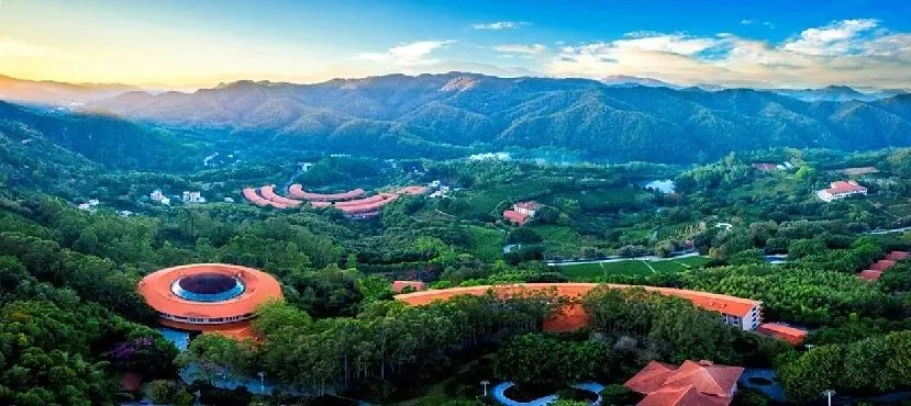 南寿峰健康产业园位于梅州市梅县区松口镇,以建设"神秘的客家药王养生谷,国家级的养生养老胜地"为战略发展目标,是国家4A级旅游景区。园区以"文化+休闲+养生+养老"为主题,集南药种植、中药加工、养生养老等功能于一体,森林覆盖率达85%,空气负氧离子含量8000/立方厘米。核心项目包含天使之吻玻璃桥、农耕文化长廊、南药文化长廊,配套中医药文化博物馆、长寿谷滨水游憩带及药膳食疗服务,设木屋别墅等特色住宿。项目2010年启动建设,2015年通过国家3A级景区认证,2024年升级为国家4A级景区。一期工程建成游客中心、养生酒店及南药科普长廊。2018年获评广东省青少年科技教育基地,2019年成为省级3A农业公园。