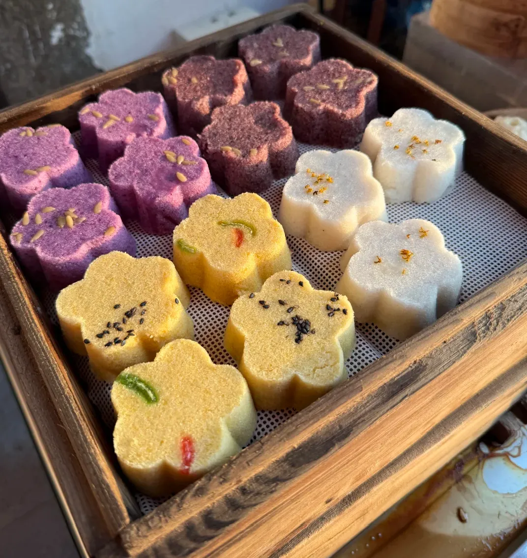 糕团老字号味道稳,甜口顶,尝一块就可以,别点满桌子。