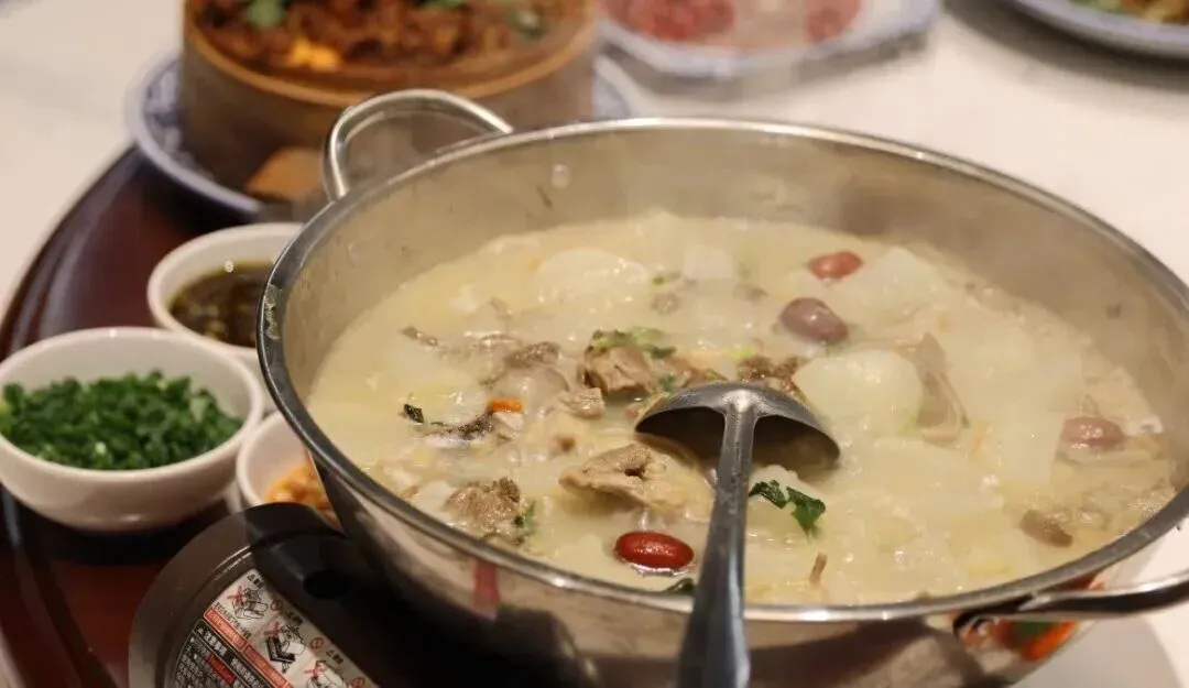 除了刨猪汤,冬日的合川白山羊美食更是不能错过的味觉盛宴!精选的合川白山羊膻味小、蛋白质含量高,炖成乳白色的羊汤翻滚沸腾,香气随风飘散,一口下肚,从头暖到脚。