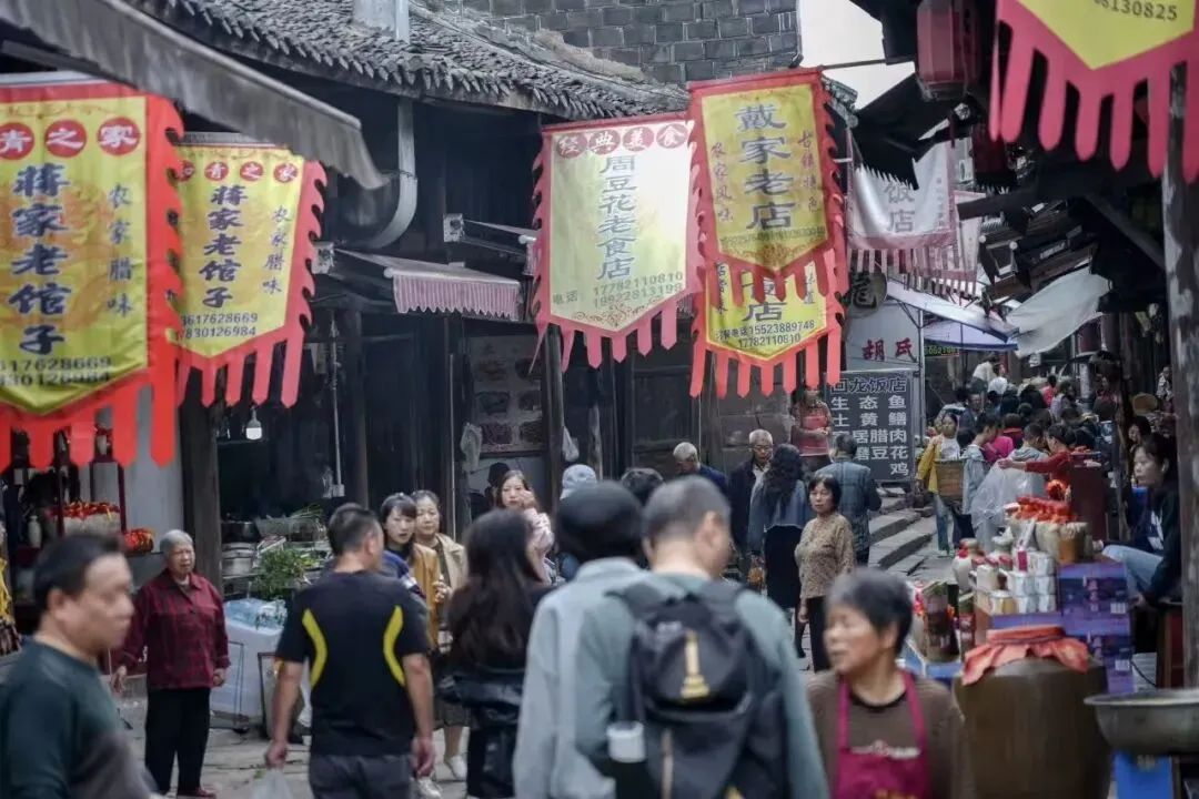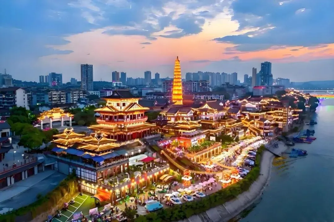 文峰古街坐拥巴渝吊脚楼群与三江交汇的绝景,文峰塔与会江楼在此遥望,街区规划“临江长桌宴”“火锅风情街”“江岸夜市街”三大主题板块,形成环形游览动线,串联起会江楼民俗展演等丰富场景。