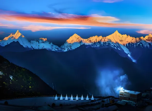 第五站:梅里雪山云南第一高峰卡瓦格博,10月至次年5月观赏日照金山概率最高。飞来寺/雾浓顶观景台最佳,住观景酒店可晨观雪山。冬季自驾需备防滑链,提前3天查天气预报。小众秘境巴拉格宗大峡谷,通天峡玻璃栈道与千年菩提树奇观值得探索。