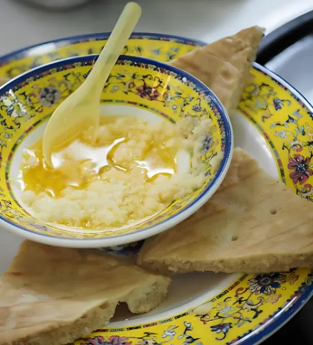 第四美食:糌粑“藏家阿嬷糌粑”手心搓成太阳馍,配酥油茶食用。早晨配转经声,咬开酥脆外皮,青稞香混着奶香直窜鼻尖。