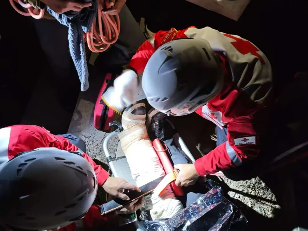 “20多分钟后队员到达现场时,天色已微暗,山上其他群众正陆续下山,伤者身旁有三位同伴陪伴着他。”救援队负责人林峰回忆。经询问得知,伤者在下山时脚卡石缝摔倒,当即无法动弹。队员初步检查判断,伤者腿部为严重骨折。