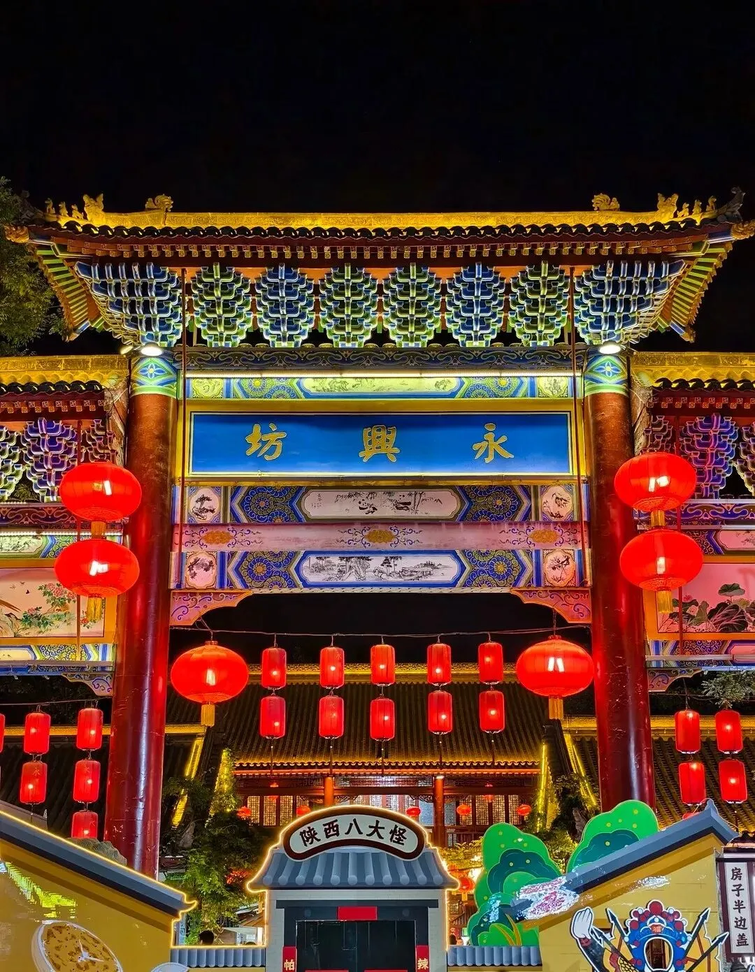大唐不夜城周末挤,手机举起来都是别人胳膊,别硬挤,远处拍灯就够了。