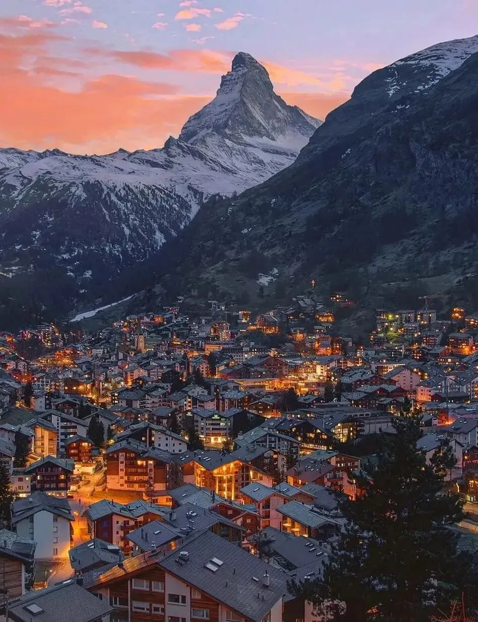 8.瑞士·采尔马特 阿尔卑斯山下的童话小镇 这里不仅可以看到 雪山与云海交融的美景 还是极限爱好者的天堂