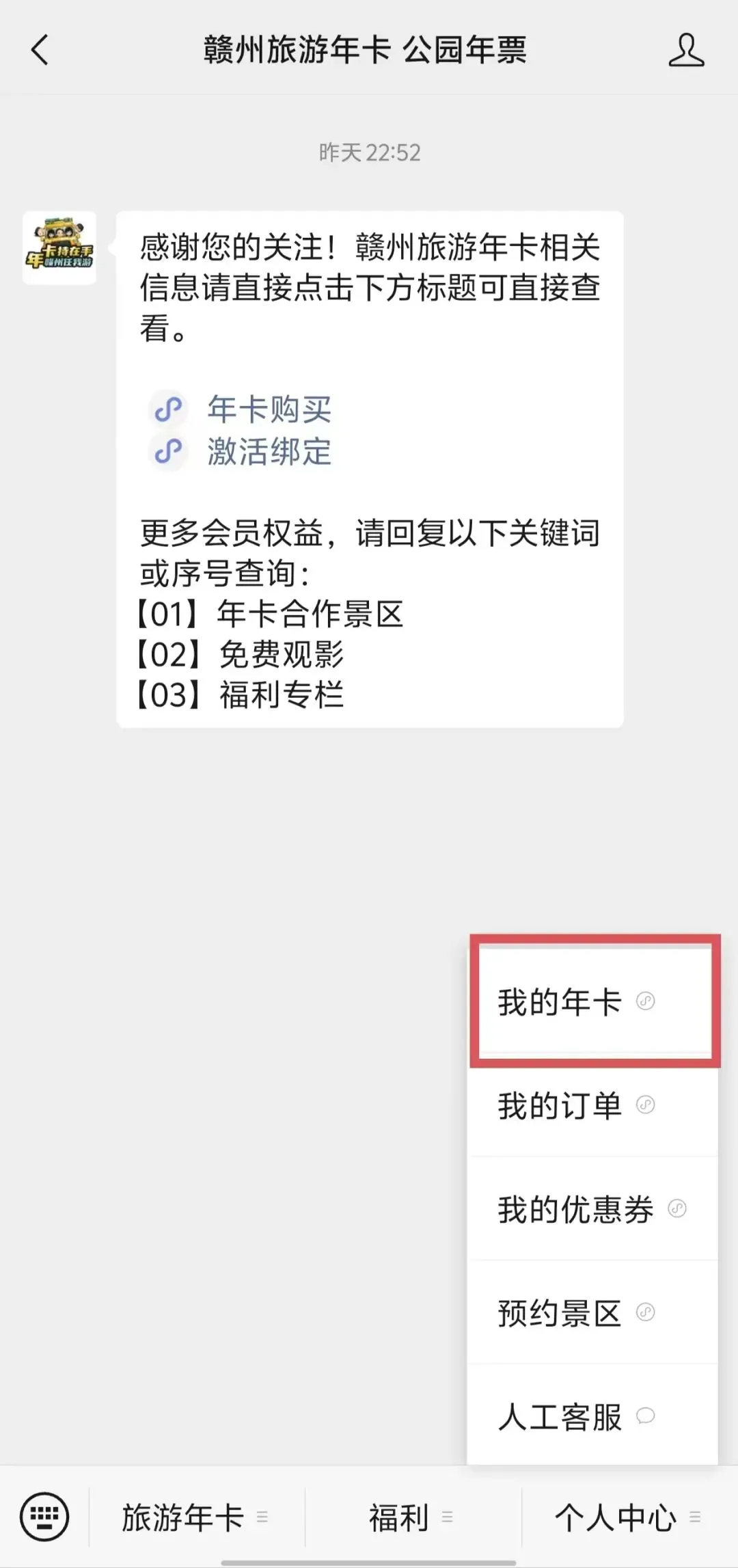 用户到达美好时光影城指定核验处后,打开手机蓝牙,在微信“赣州智慧旅游”或“赣州旅游年卡”公众号菜单栏找到“我的年卡”,点击“蓝牙入园”,生成入园码,核销次数后,前台工作人员即可帮忙选座出票。