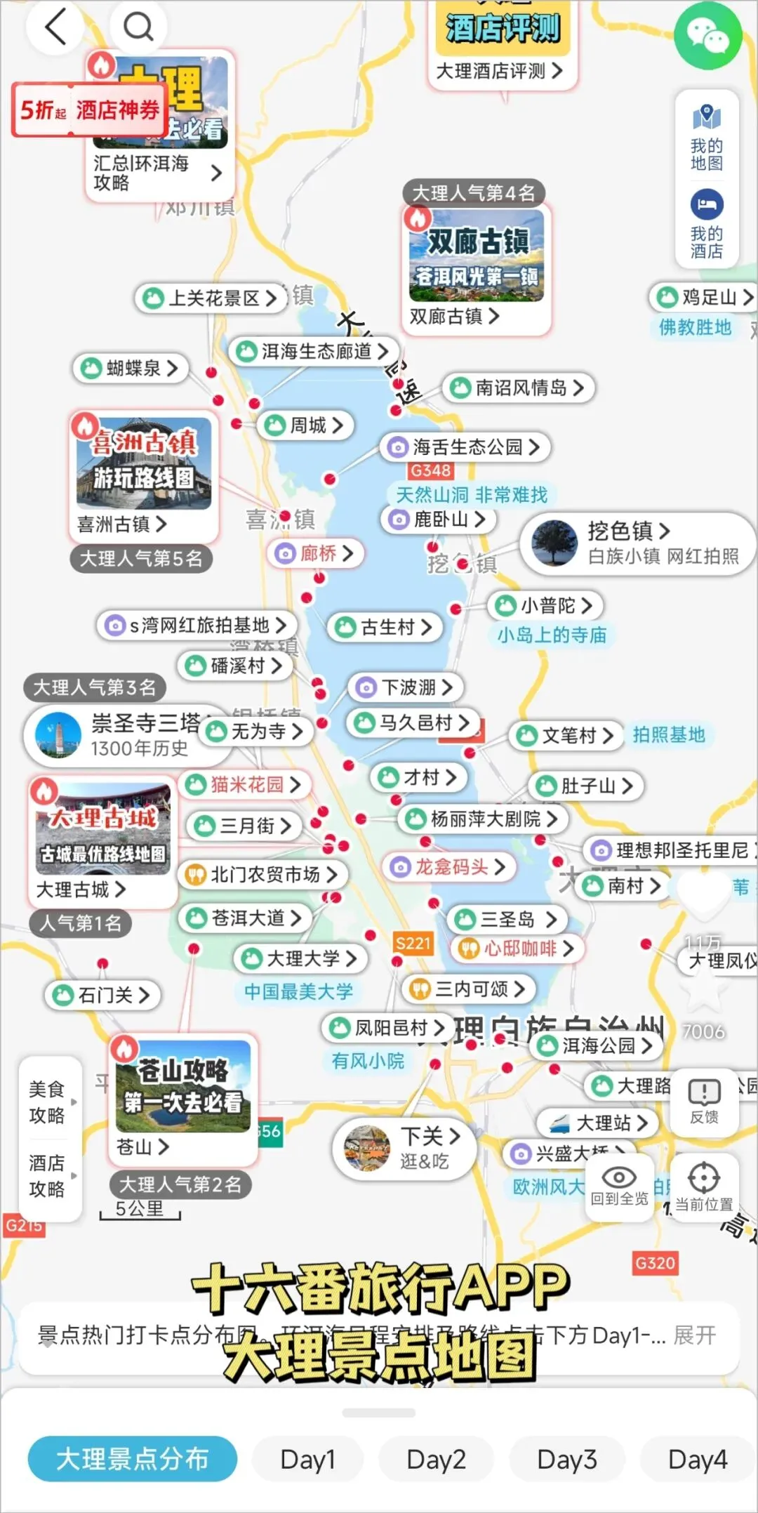 国内旅游,一定提前下个“十六番旅行APP”,全国各地的旅游地图都帮你整理好了,景点、打卡点、特色美食、游玩行程全都有,参照着游玩,超省事儿,还可以制作自己的旅游地图!截几个图大家看看: 大理景点地图: