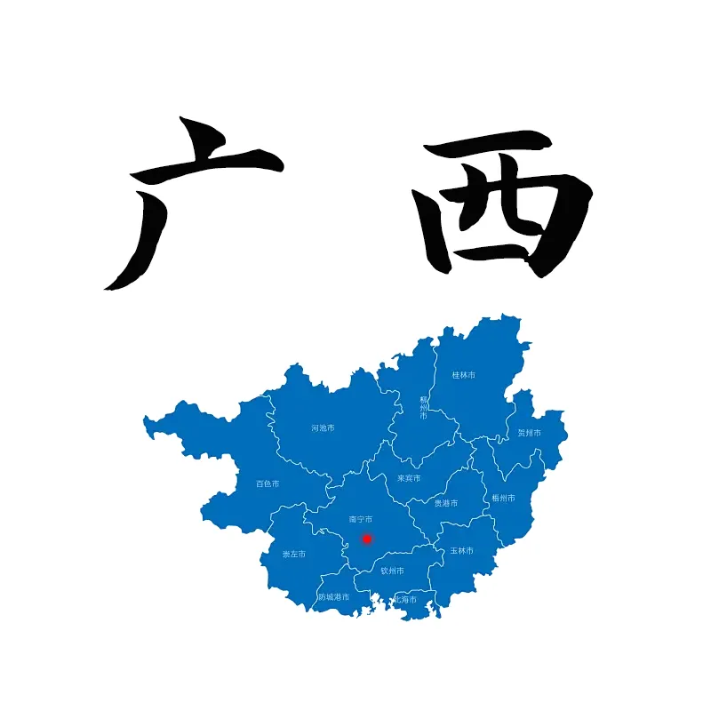 广西壮族自治区,简称 “桂”,首府为南宁市。位于中国南部,东邻广东,东北接湖南,北靠贵州,西连云南,西南与越南毗邻,南濒北部湾,与海南隔海相望,是西南地区最便捷的出海通道。地处中国地势第二级阶梯中的云贵高原东南边缘,呈西北向东南倾斜状,地貌有山地、丘陵、平原和台地四种,喀斯特地貌广泛分布,占比达 37.8%。属亚热带季风气候区,气候温暖,雨水丰沛,光照充足。广西的文化是由世居少数民族文化与中原文化、海洋文化不断融合而成,壮族的 “三月三”、侗族的 “花炮节”、苗族的 “芦笙会” 等都是具有浓郁民族特色的传统节日。此外,六堡茶制作技艺、瑶族油茶习俗被列入联合国教科文组织人类非物质文化遗产代表作名录。自然和人文旅游资源丰富,截至 2023 年底,有国家 5A 级旅游景区 9 个、国家 4A 级旅游景区 349 个。漓江风景名胜区、龙胜龙脊梯田、合浦汉代文化博物馆等都是著名的旅游景点。