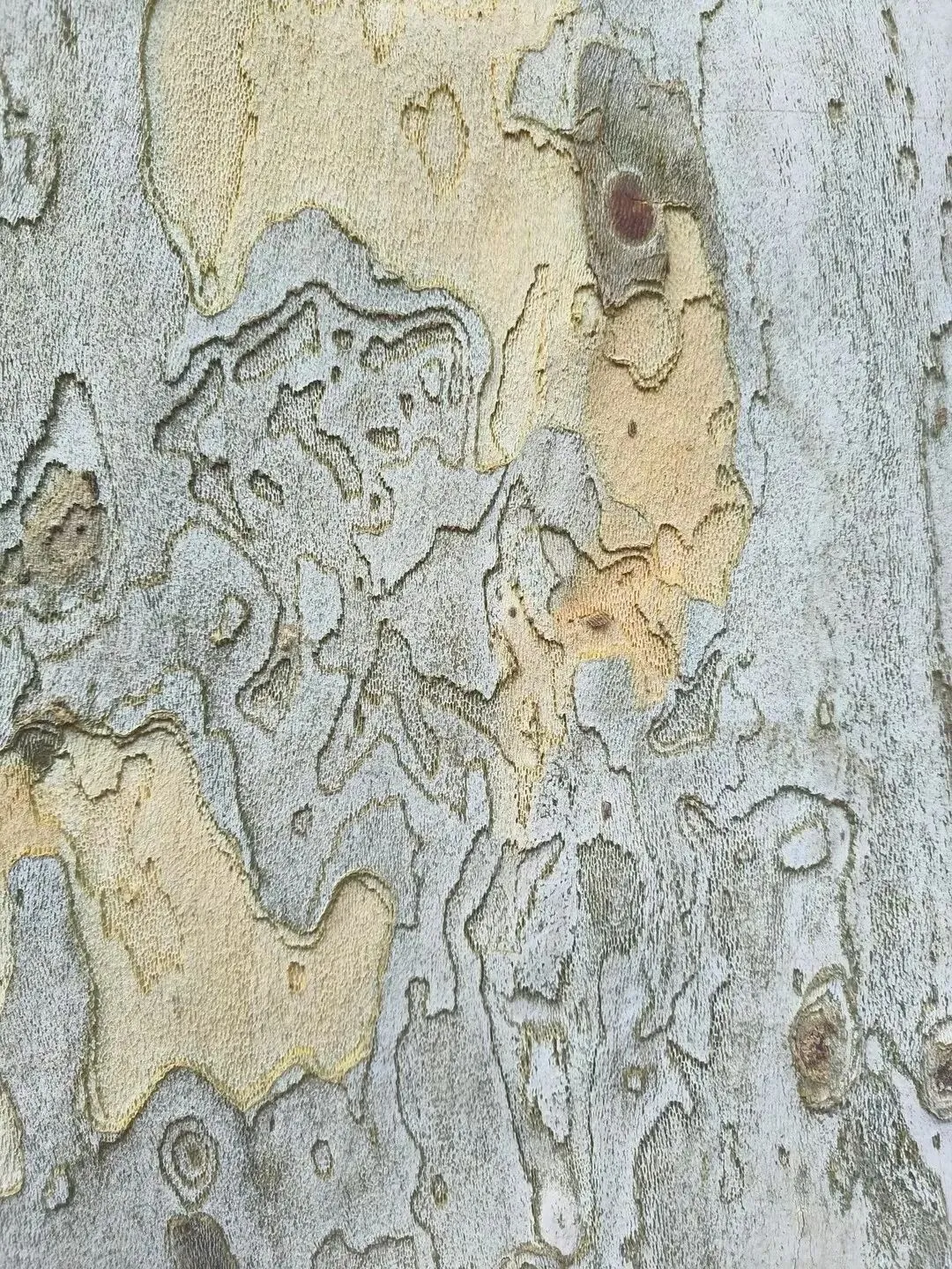 路边的粗壮梧桐树拔地而起,树皮纹理纵横交错、各不相同,深深浅浅的沟壑里,藏着大自然的密码,仿佛是造物主写下的神秘字符,引人驻足凝望。