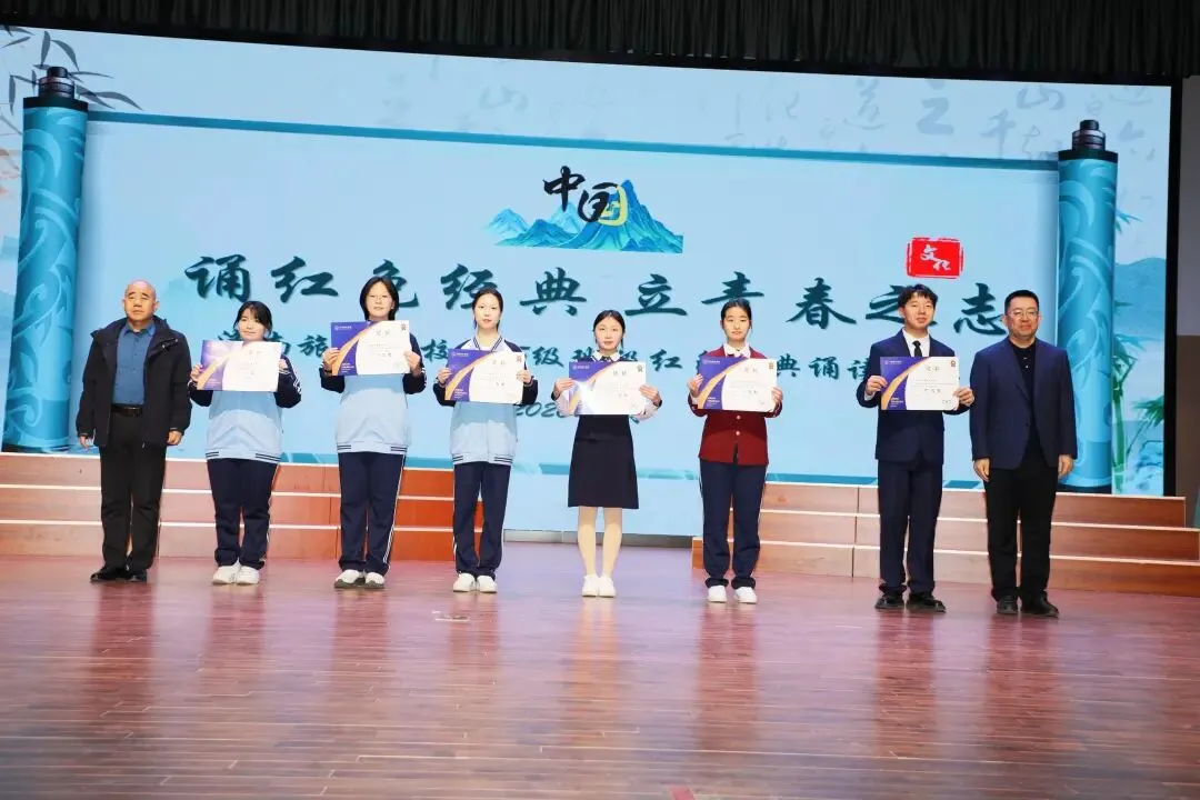 比赛中,各班级依次登台,带来《青春》《少年中国说》《七律·长征》《沁园春·长沙》等经典篇目。同学们以铿锵有力的声音传递爱国情怀,更结合情境创设、书法、舞蹈等多种形式,让红色经典焕发出新的时代活力。时而激昂的诵读,让现场观众仿佛重回革命峥嵘岁月;时而温婉的演绎,又让大家感受到经典文化的细腻韵味。整个报告厅内,红色情怀与青春朝气交织相融。