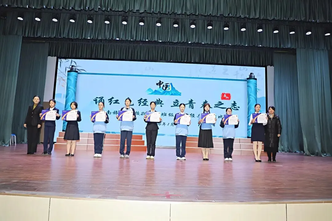 红色经典润心田,青春壮志展华章。本次活动不仅为同学们提供了展示自我的平台,增强了班级凝聚力,更让红色文化浸润校园,引导学生从经典中汲取奋进力量、厚植家国情怀。这是一场生动的爱国主义教育课,更是一次深刻的精神洗礼,激励着旅校学子以青春之名赴时代之约,在成长路上勇毅前行,用实际行动书写新时代职教学子的使命与担当。