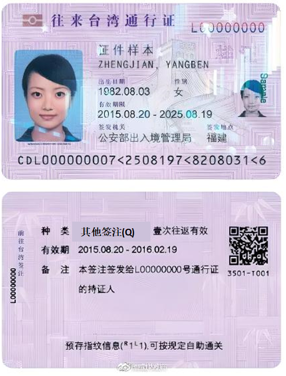 2、往来台湾通行证扫描件 彩色扫描通行证原件有照片页及签注页(证件有效期必须需为6个月以上);