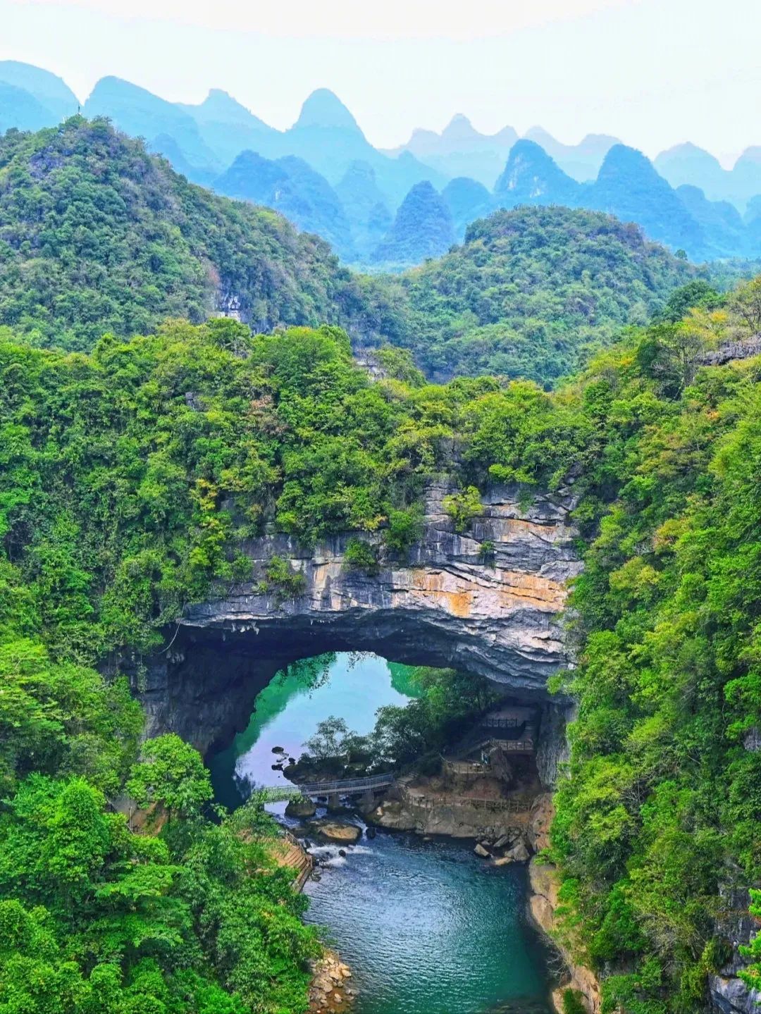 鹿寨香桥岩溶国家地质公园位于柳州市鹿寨县中渡镇,是一座以岩溶地貌景观为主体的地质公园,这里拥有发育典型的喀斯特地貌、独特的地下河洞穴系统、丰富的生物多样性以及美丽的自然景观。地质公园内主要有五个景区,分别是香桥岩溶景区、中渡古镇景区、寨沙侗寨景区、江口自然生态景区和紫荆花观赏景区。每个景区都有其独特的自然和人文景观,如香桥岩溶景区内的香桥岩溶峡谷、天生桥、九龙洞等。