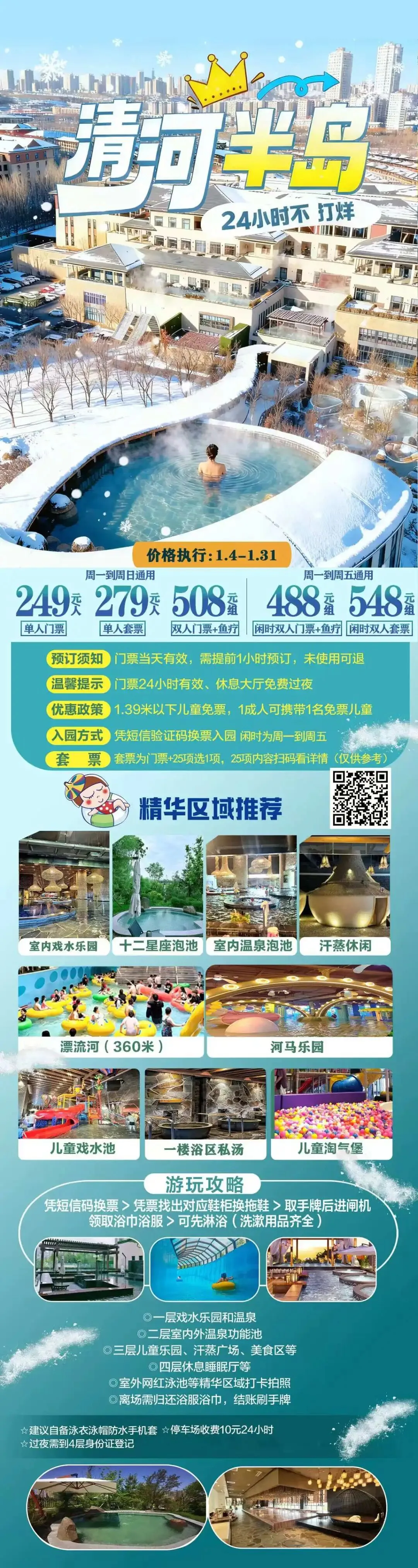 2026年冬季沈阳市内游乐场景区汇总(三十二)清河半岛温泉门票加戏雪:单人269元 /套票299元