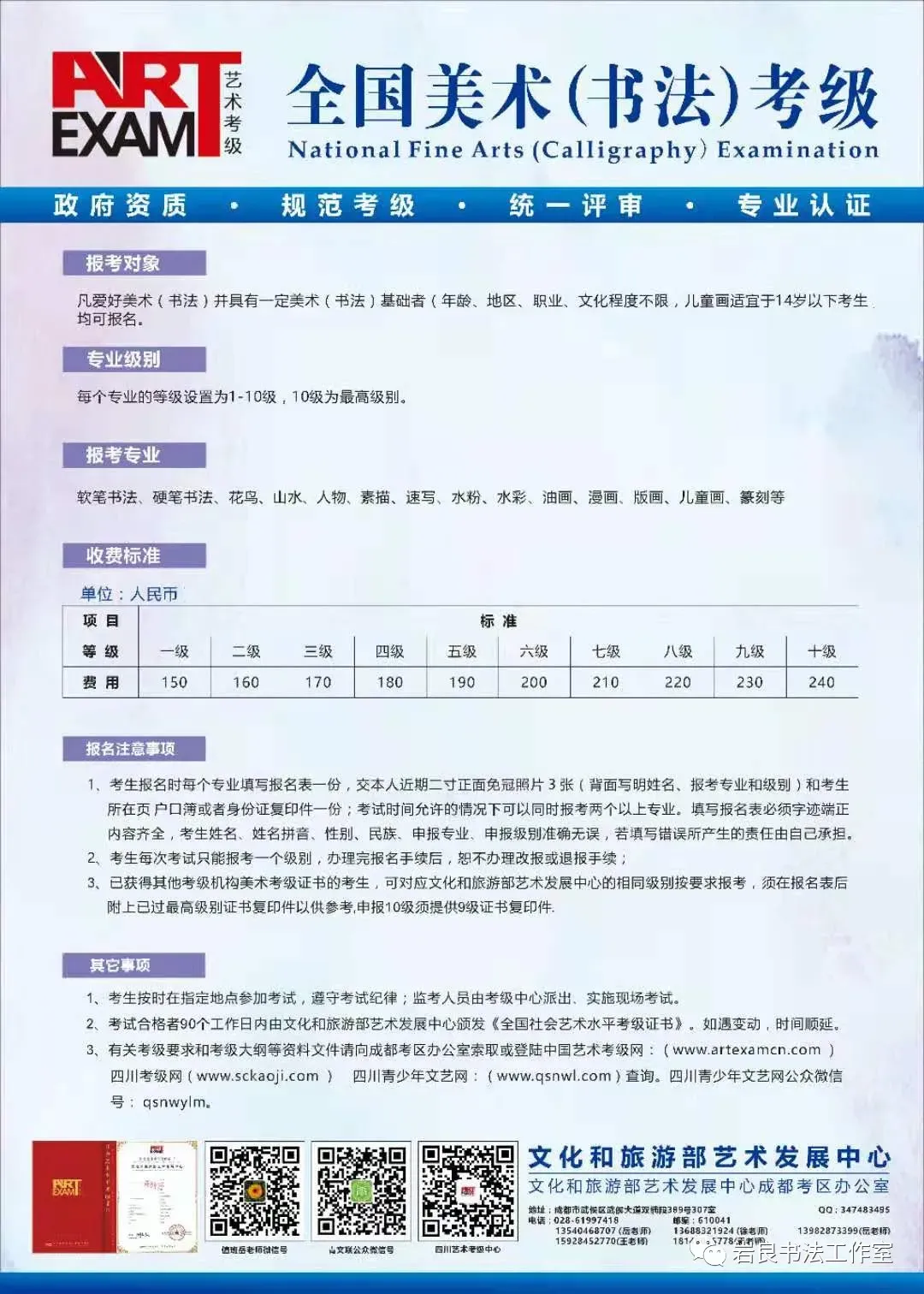 〔通知〕文化和旅游部艺术发展中心2026年2月份书法考级通知