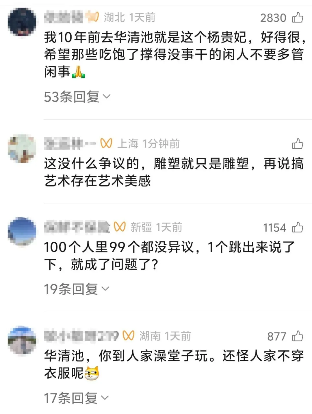 近日,多名网友发帖称,西安临潼华清池景区内的“贵妃出浴”雕像因袒露上半身,存在“不雅观”“败坏社会风气”等问题。相关帖子发布后,迅速引发数万网友关注和热议,部分网友认同上述观点,认为雕像衣不蔽体,有损杨贵妃的古典形象。