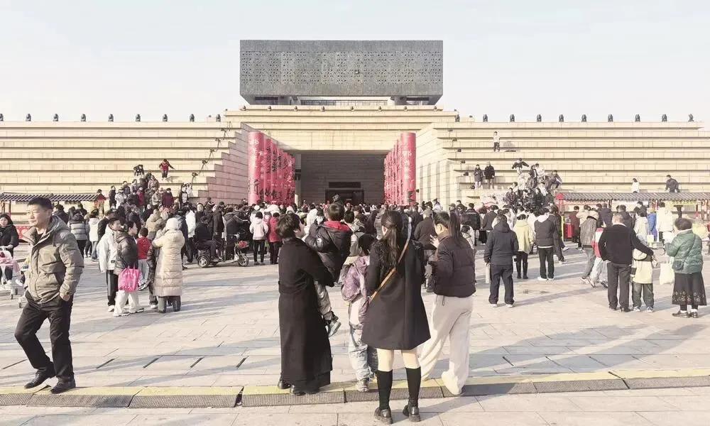 在赵王城国家考古遗址公园内,春节期间的“点亮王城”夜游活动吸引了大量居民参观。活动地点位于赵王城一期文化展示区中轴线主景观道和博物馆区域,以“弘扬赵文化,夜游赵王城”为活动主题,以赵王城南广场为起点,经赵都赋、历史长卷、下沉广场至赵王城遗址博物馆沿线进行灯光点亮,为园区营造出独特而美丽的夜间景观,增添浓厚的文化氛围,不仅提升了园区的整体形象,还为游客和市民提供了一个别具魅力的夜间游览场所。