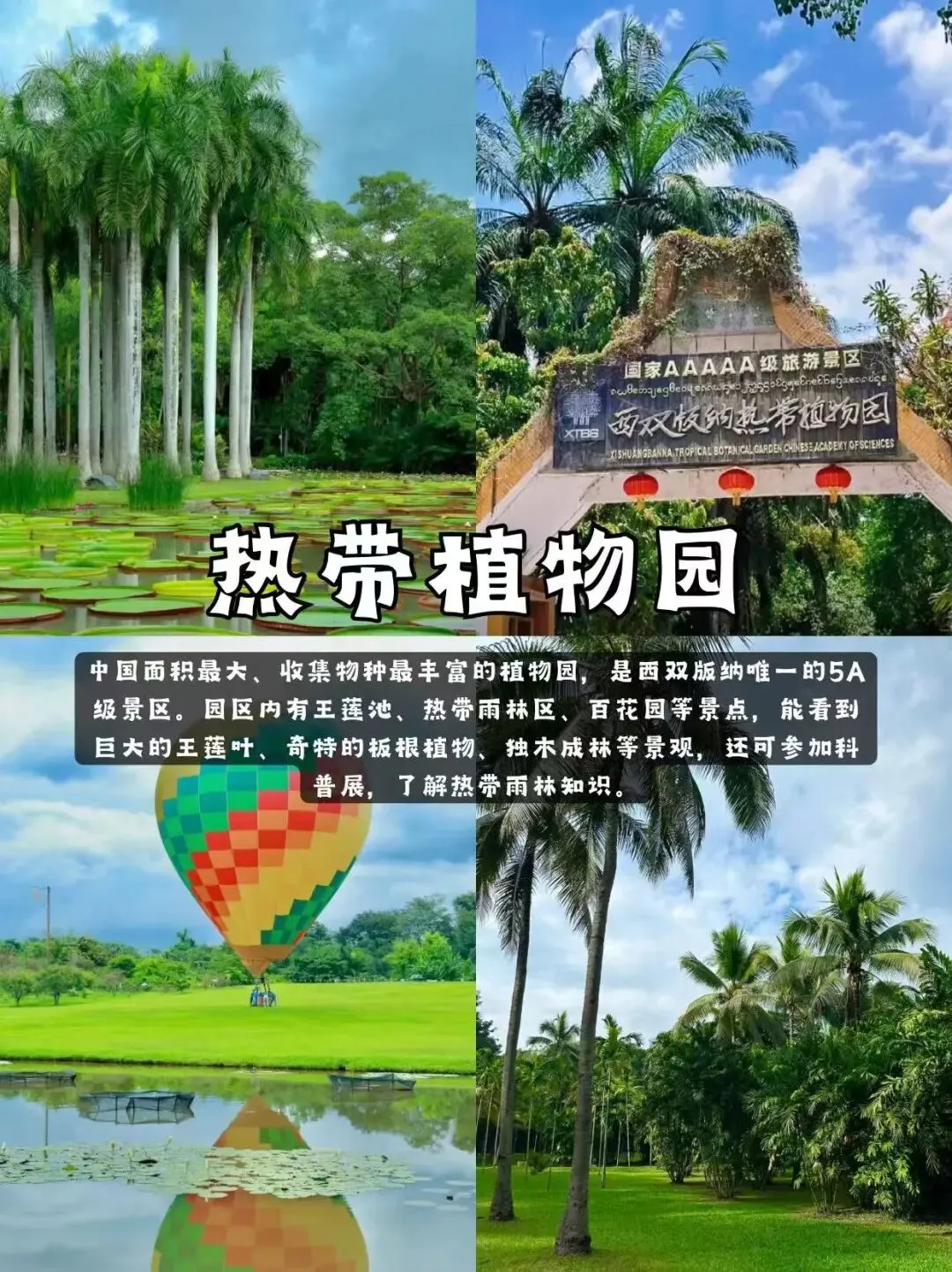 1、热带植物园:中国面积最大、收集物种最丰富的植物园,可欣赏到各种热带奇花异草和雨林景观。