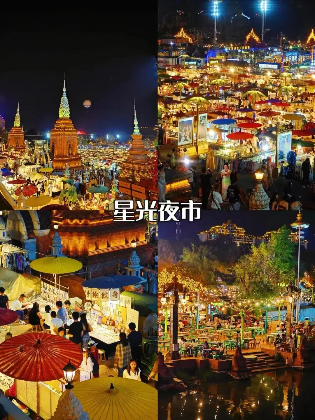 7、告庄西双景:傣语意为“九塔十二寨”,是景洪市新兴的旅游文化综合体,其间的星光夜市是品尝美食、购买手工艺