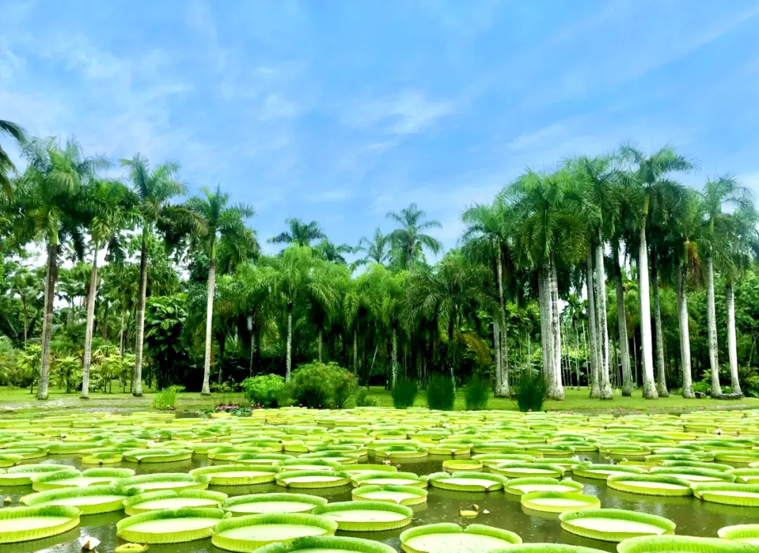 2. 下午:打卡「中科院热带植物园」,看王莲、各种奇花异草,沉浸式感受热带雨林。玩累了回酒店,去泳池躺喝超chill,一天的疲惫都消散了。