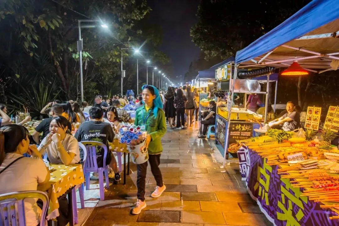 3.傍晚:逛「江边夜市」买伴手礼(普洱茶、傣锦都很可),之后回酒店收拾行李,临走前再在高空观景区欣赏版纳风景,完美收尾。