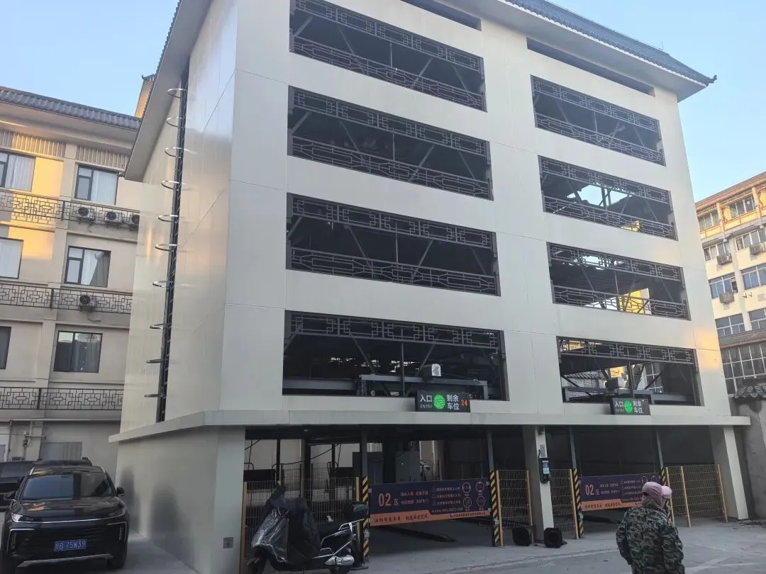 记者在皮市街北端路西看到,一座古色古香的立体停车楼已经建成。停车楼占地约150平方米,高约12米,地上6层,车辆从南北两侧通道出入,内部可停放七、八十辆汽车。停车楼旁的空地上,一批充电桩正在建设,届时将服务于新能源汽车充电。